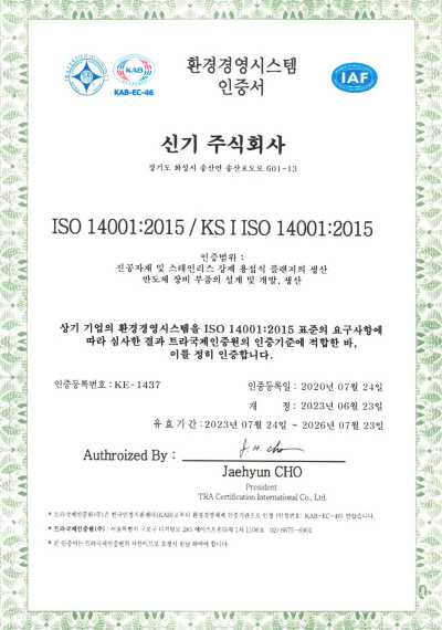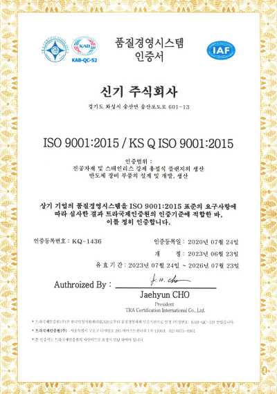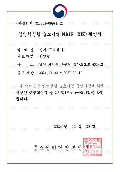 혁신과 도전 정신으로 미래를 위해 끊임없이 노력하는 신기 주식회사입니다.