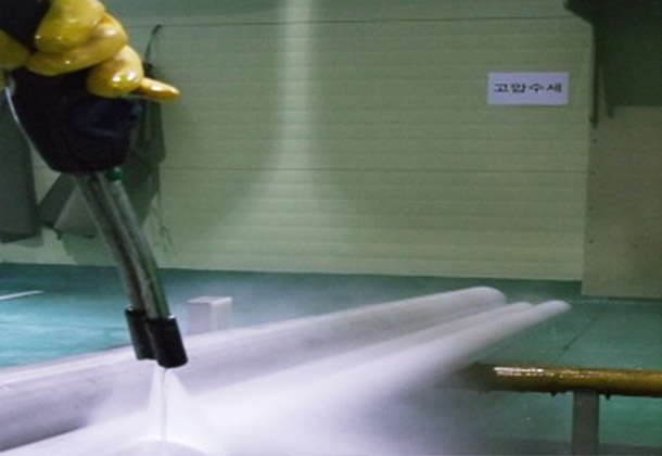 산 세정이란, 세척하려는 SUS 기기나 배관 계통의 내부 스케일이나 부착물을 산 세정 용액을 이용한 표면처리 작업을 말하며, 세정용액과 SUS제품의 화학반응으로 인하여 깨끗한 표면을 얻을 수 있다.